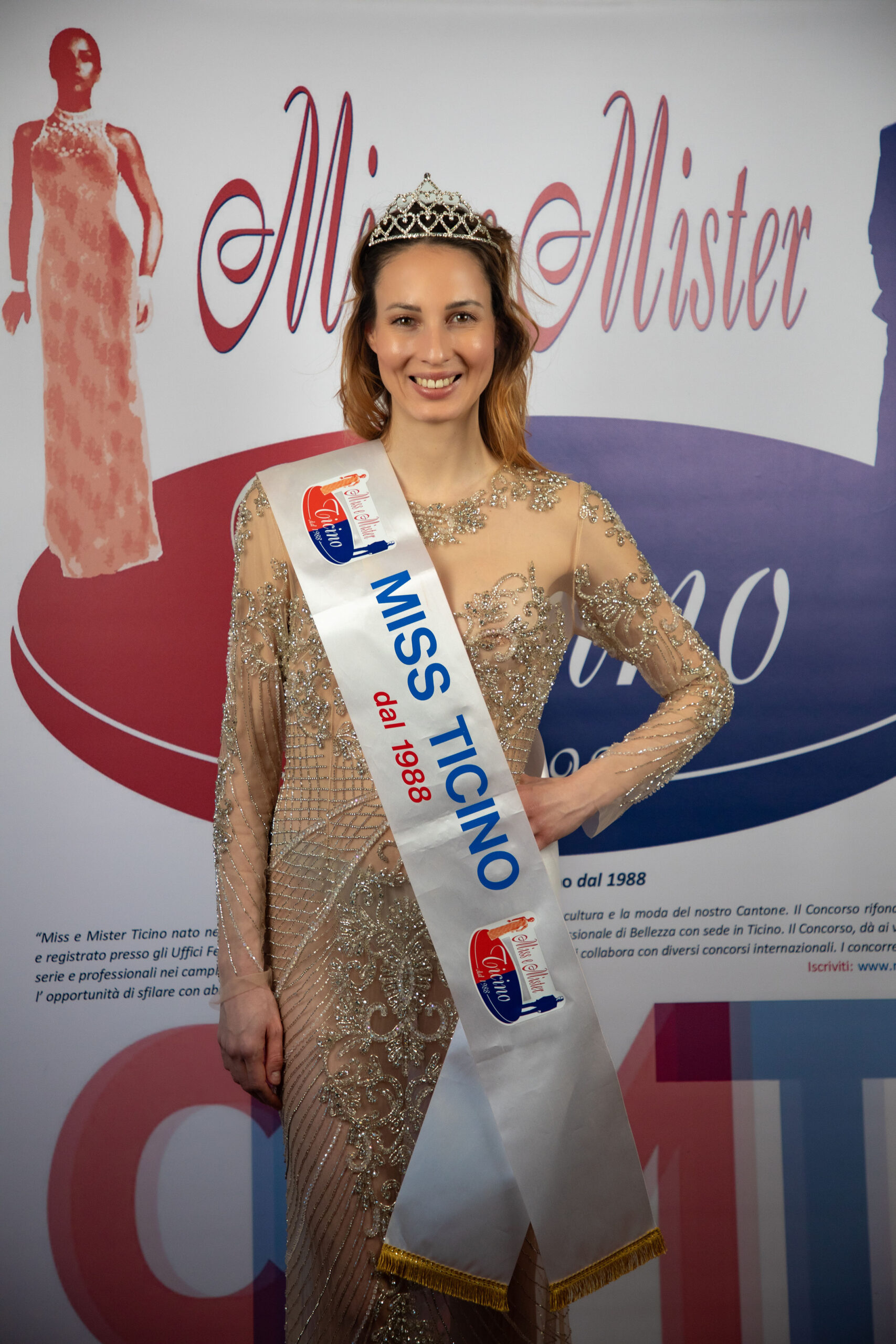 Nastia Crippa-Kucherenko, 178 cm di portamento e presenza scenica, ha conquistato la giuria e il pubblico non soltanto per la sua straordinaria bellezza e per l’eleganza naturale con cui ha indossato un meraviglioso abito di Alta Moda firmato Anton Giulio Grande, ma soprattutto per le sue doti umane e intellettuali: intelligenza vivace, sensibilità autentica e una spiccata predisposizione al messaggio sociale. Nella foto ufficiale, la neo-eletta Miss Ticino appare raggiante, con la corona e la fascia simbolo del concorso.